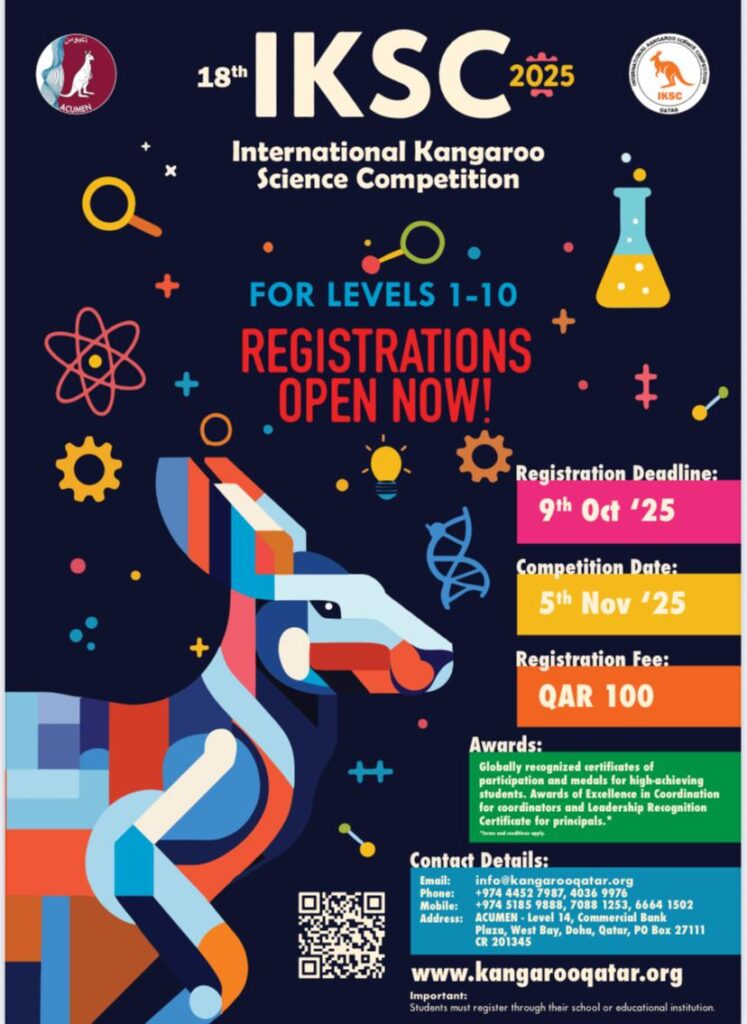 تفتخر مدرسة الفلاح الخاصة للبنين بمشاركتها في مسابقة كانجارو الدولية للعلوم (IKSC)، التي تهدف إلى تنمية مهارات التفكير العلمي لدى الطلاب وتعزيز ثقتهم بأنفسهم وحبهم للبحث والاكتشاف